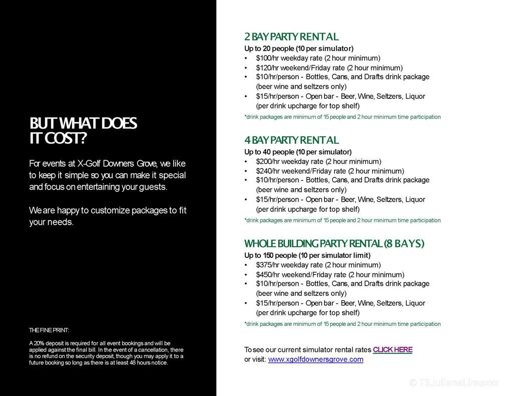 X-Golf will help make your Corporate or Charity Event run smoothly by working with you each step of the way. We have packages available from 10-60 people plus food, beer/wine, and golf tip packages with a pro available.